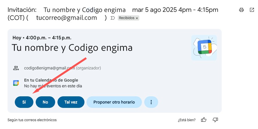 "Añadir al calendario" y en "Sí" para aceptar la invitación